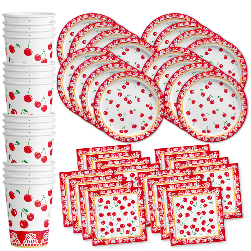 Cherry Birthday Party Tableware Kit For 16 Guests
